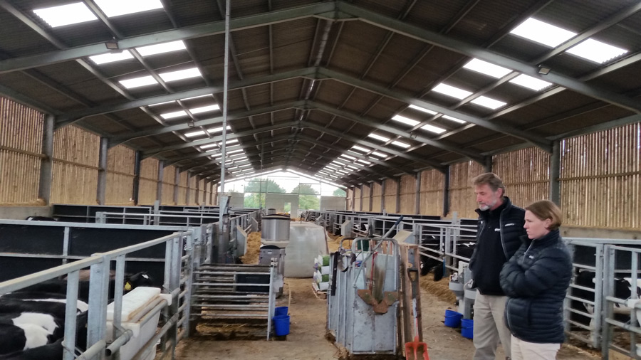 Wes Blum (Directeur Geno.UK) et Emily (Commerciale du réseau Géno.UK) dans un des trois bâtiments nursery du groupe « Barbers ». Ce dernier regroupe et collecte 15 fermes différentes et transforme le lait en Cheddar et bientôt en Brie.